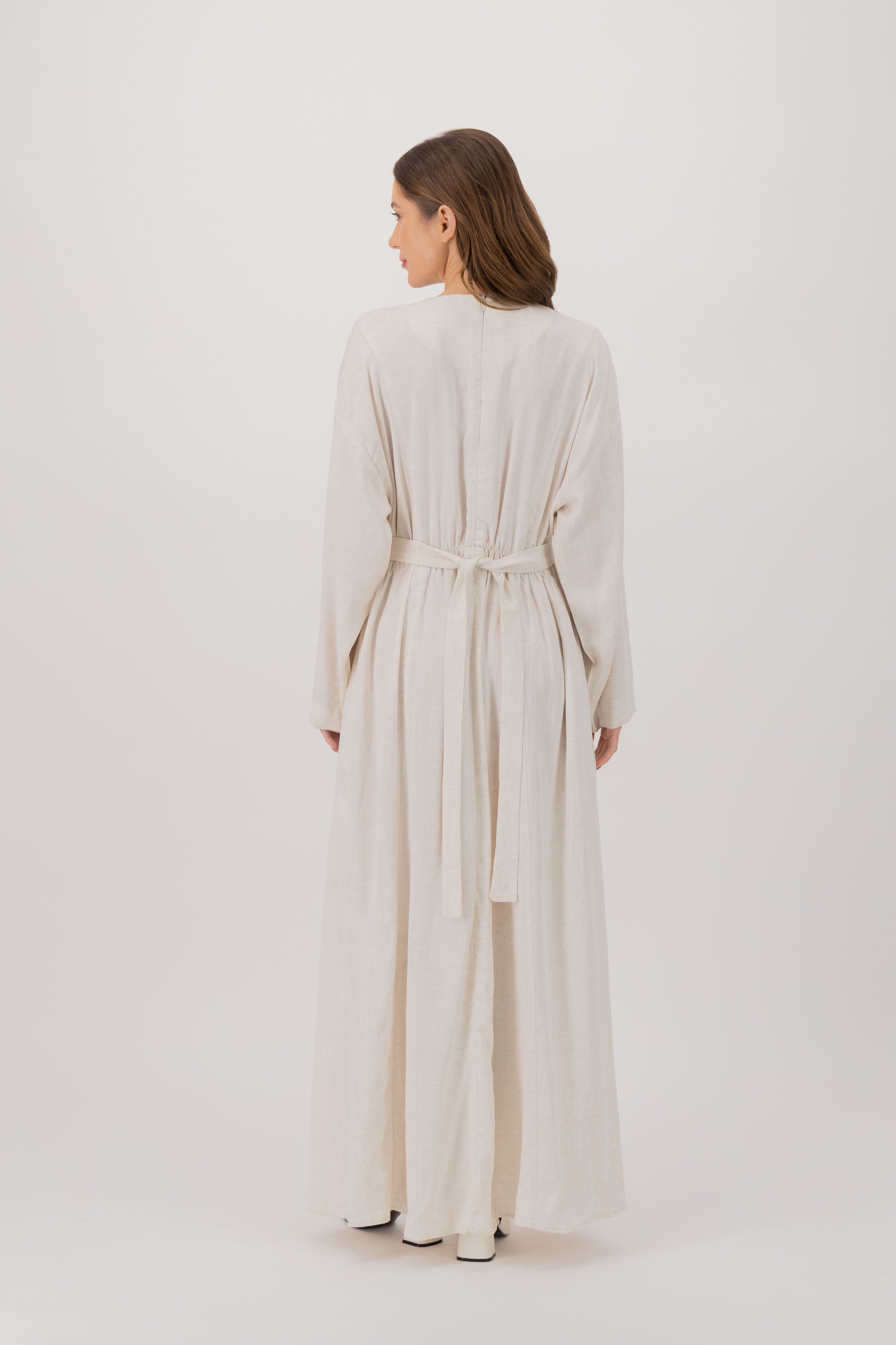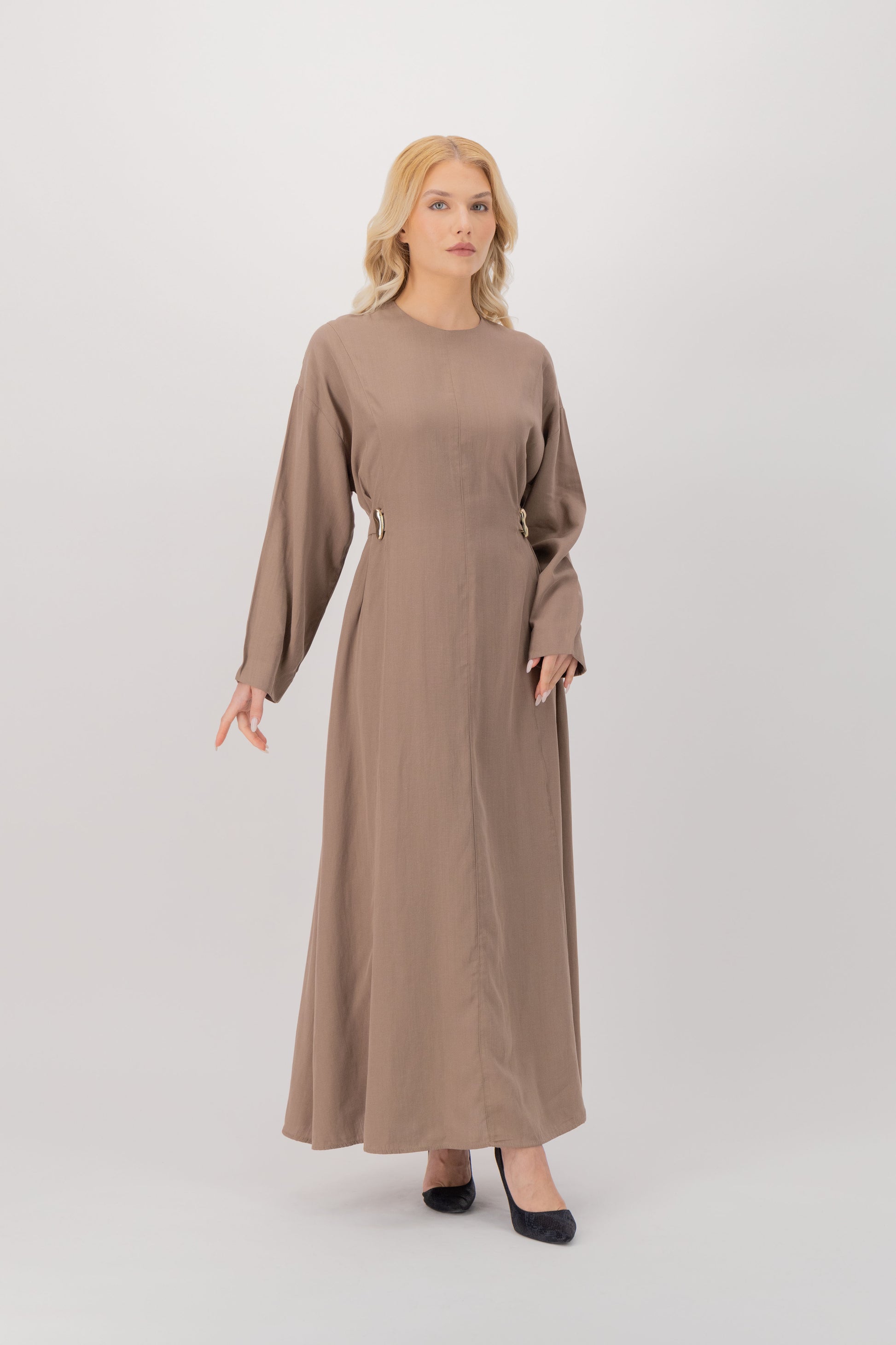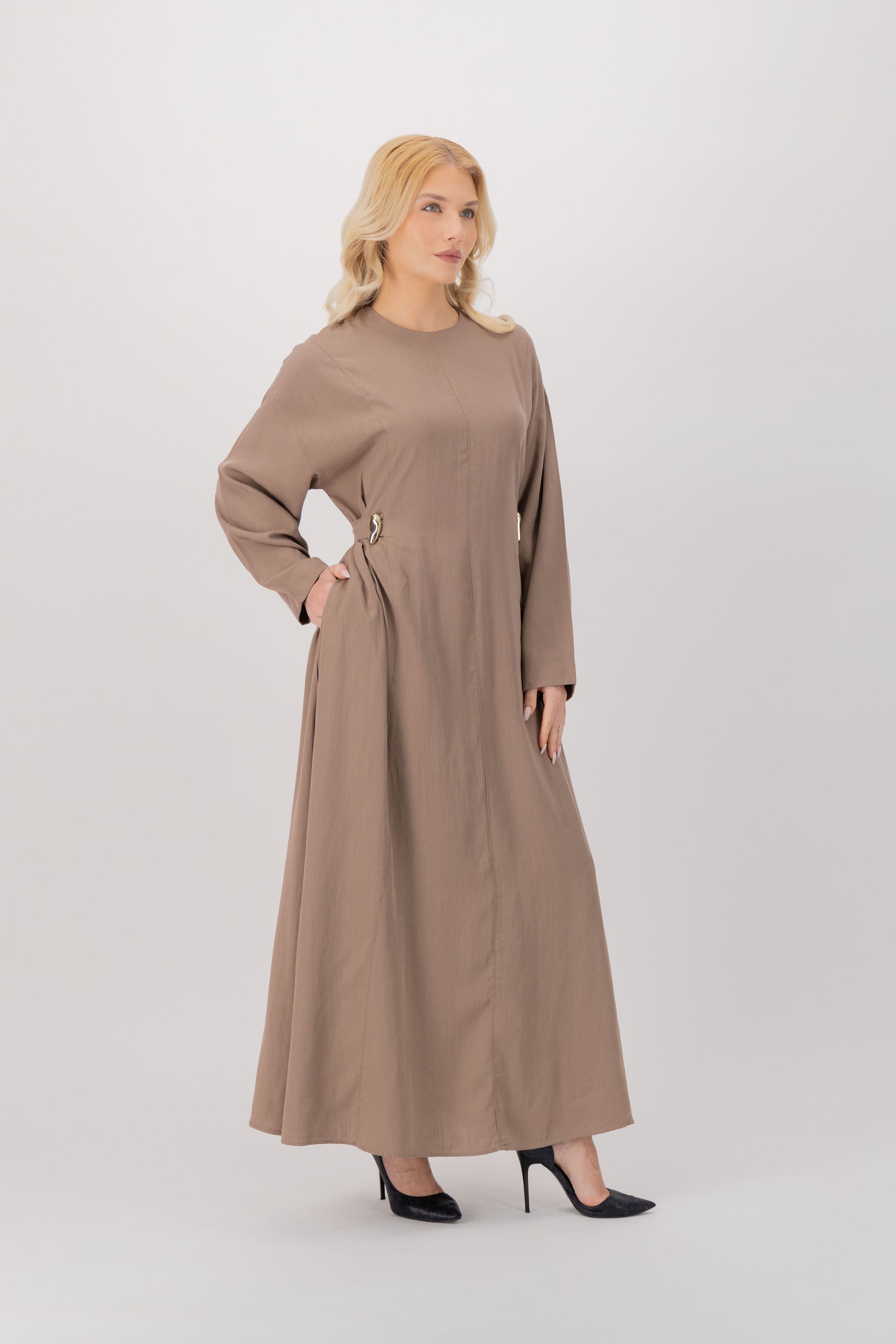 Step into effortless sophistication with this dress that blends modern design with refined details. Designed with gold accents for a touch of luxe, featuring pockets and a belt at the back that allows you to adjust the fit to your liking, offering both structure and softness in one striking piece. The result is a flattering silhouette that moves seamlessly from day to evening with timeless elegance.