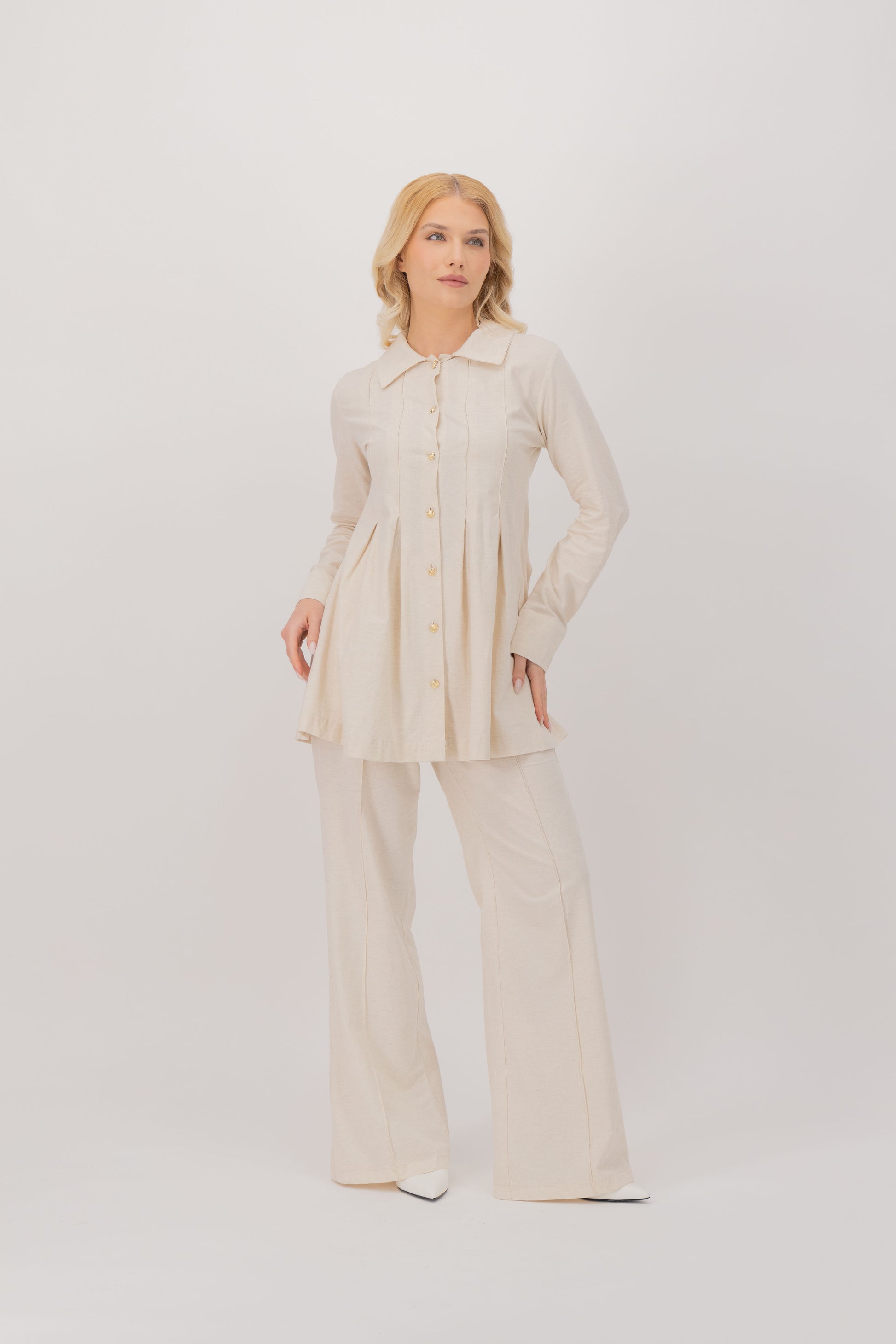 The Tailored Linen Co-ord Set is a modern matching top and pants set designed for effortless sophistication. Crafted from breathable linen, it features a tailored fit, pockets, belt, and elegant gold button details at the front. A polished yet versatile set that transitions seamlessly from day to night.